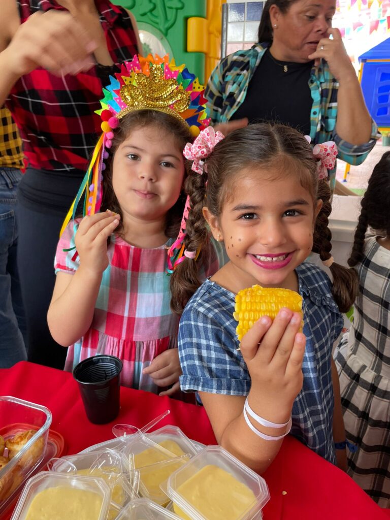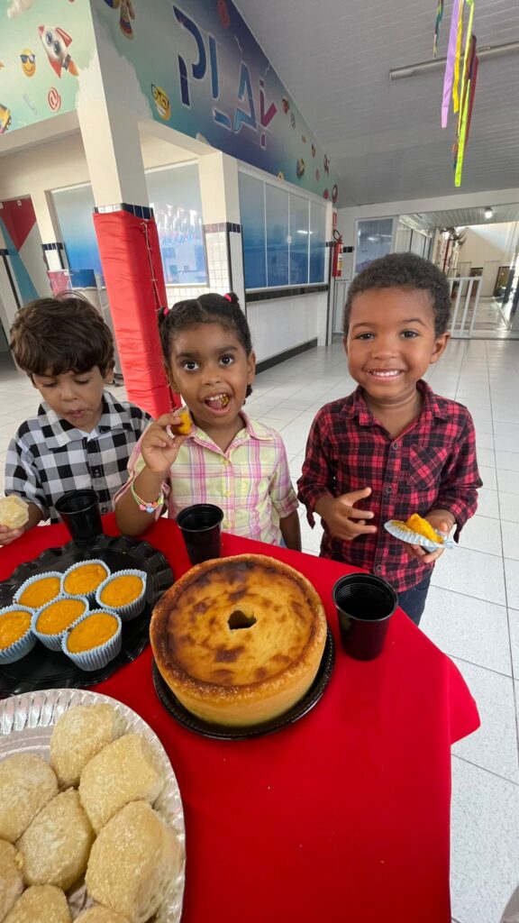 Os pequenos da Educação Infantil também se deliciaram com as comidas típicas e se animaram com a chegada do mês de junho. Para a coordenadora Karla Valéria, esse resgate é muito importante, pois se torna um momento de vivenciar e experimentar nossos costumes. “Todo esse ambiente decorado, o som das bandeirinhas, isso tudo traz uma emoção que a criança se sente pertencente e se contagia. E viver isso com eles é muito emocionante”.
