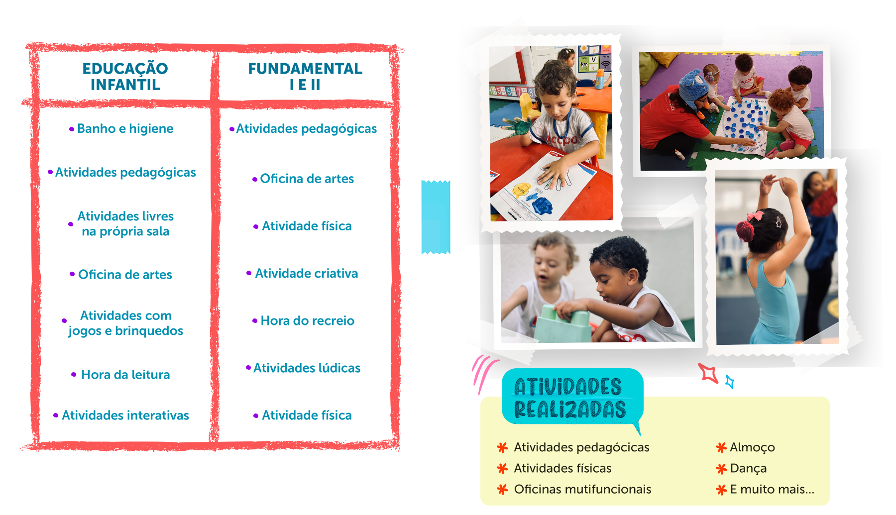 Atividades lúdicas e interativas com acompanhamento complementar específico para idade do seu filho.